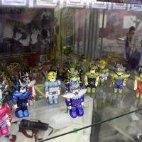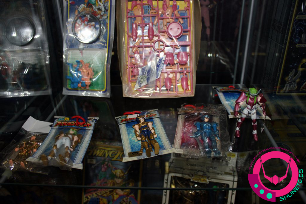 Acabada la ruta de los dibujos comenzaba la curiosidad de las vitrinas, donde todo el que pasaba acaba agachado mirando la resina de Ikki y la de Hyoga. Personalmente era la zona de las preguntas ¿Y esto qué es? ¿De donde habrá salido aquello? La zona Vintage se llevaba la palma pues extraños y ajenos al mundo del custom Vintage se preguntaban de donde habían salido esas figuras y esas cajas que no recordaban haber visto en las jugueterías de su infancia o El Corte Inglés. La verdad es que nos hacía sentir muy feliz el ver a la gente tan feliz e interesada en ello.