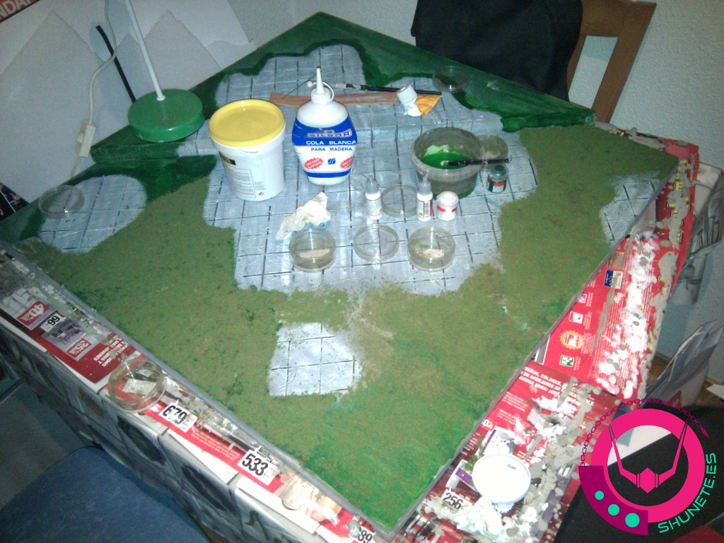 Con un ritmo frenético comenzamos a organizar y distribuir cuadros, colgar las lonas, preparar mesas y hacer viajes con el coche a por los dioramas (Gracias a David ajeno a la exposición por acompañarnos con tu coche y cedernos maletero para cargar y descargar dioramas y a Esme por cedernos el espacio en tu casa para almacenarlos).