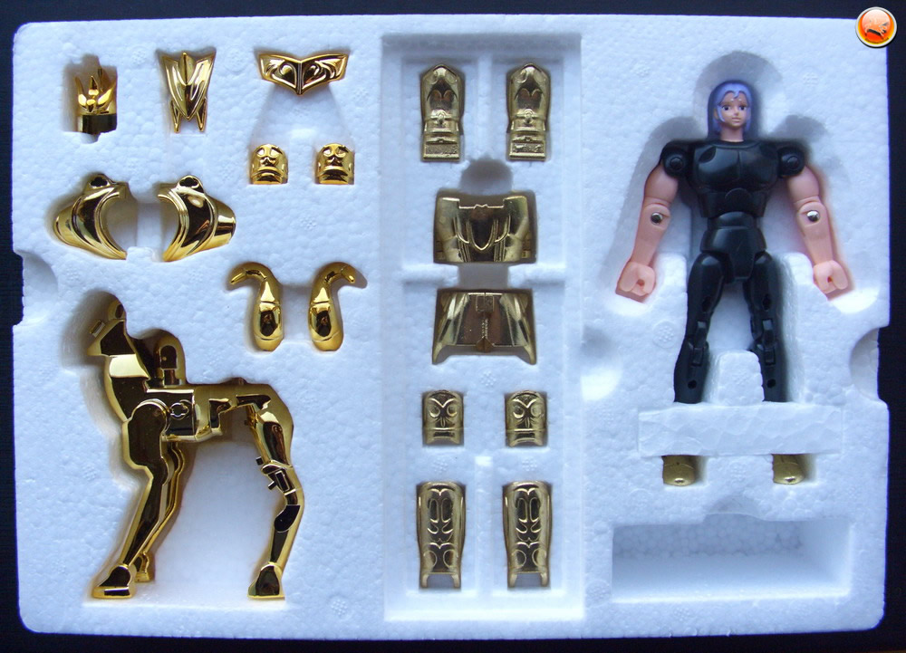 La box es similar en cuanto a diseño a todas sus compañeras de set, siguiendo el mismo formato de imágenes impresas sobre un portentoso dibujo del Gran Patriarca en su reverso. Esta tónica se rompería porsteriormente en Tauro Gold Saint y más tarde en el resto de Dorados que completarían las Gold Series.