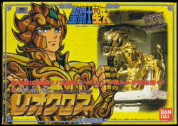 Vendido en Julio de 1987 al precio de 2.200 Yens. Aioria de Leo pertenece al primer set de Santos Dorados que componen las Gold Saints Cloth Series. La figura sería reeditada nuevamente a principios de 1988, incluyendo los catálogos promocionales de la Present Campaign de Pope Ares vigente desde el 23 de Noviembre de 1987 hasta el 17 de Abril del siguiente año. Esta version incorporaría una protección en blister e instructivo en color amarillo, a diferencia de aquella editada en 1987 durante la Campaña de Saint Cloth Box Presento.