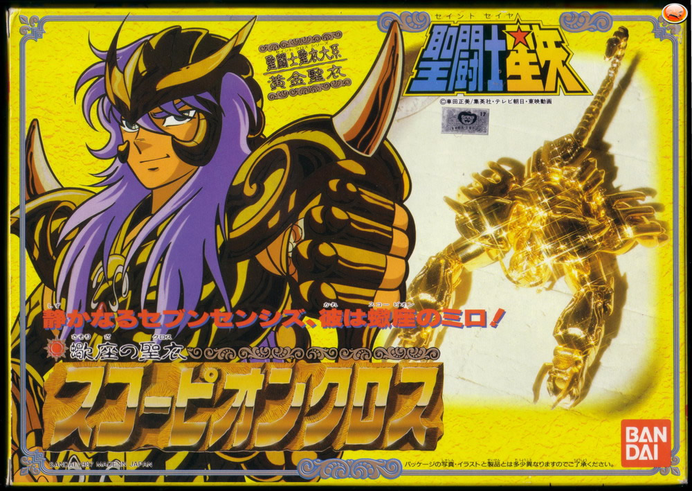 En Julio de 1987 Bandai decide lanzar al mercado una de sus líneas de figuras más exitosas, las Saint Gold Cloth Series iniciando la comercialización de los Santos Dorados con un primer set integrado por Sagitario, Leo, Aries, Cancer, Virgo y el mencionado Milo de Escorpio. Al precio de 2,200 Yens, su salida coincide con el inicio de la Campaña Presento de las Saint Cloth Box de Bronce, incluyendo lo catálogos promocionales de dicha Campaing junto a los instructivos de estos Dorados. Cabe destacar las características especiales comunes a todas las figuras de este set como son la protección central de porexpan o corcho, el color blanco del instructivo y el fuerte contraste entre las tonalidades doradas de las partes plásticas y metálicas.