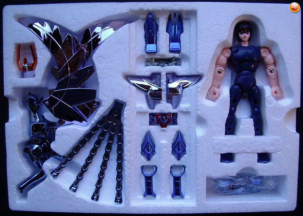 El peto esta formando por tres piezas plásticas y una metálica compuesta de dos sub-alas abatibles sobre un eje con el fin de poder adaptarla a la peana. El casco o tiara presenta un rubí incrustado, común a los otro cuatro Santos que componen el set Bronze New Version. Se trata de un añadido de Bandai del cual hoy en día seguimos desconociendo el motivo.