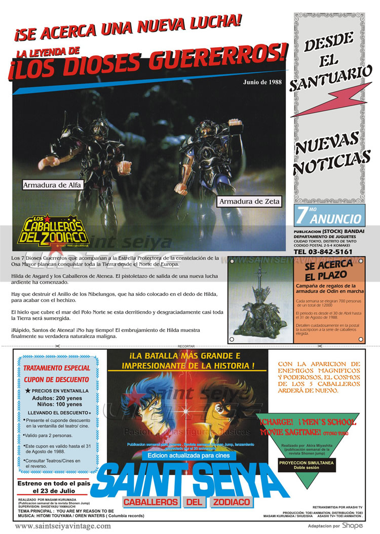 Abril de 1988 es una fecha clave en cuanto a la comercialización de Figuras de Acción y a la emisión de nuevo episodios se refiere. Concluida la Batalla de las Doce Casas, la nueva Saga de Asgard daría paso al renacer de las Armaduras de Bronce bañadas en la sangre de los Santos de Oro.