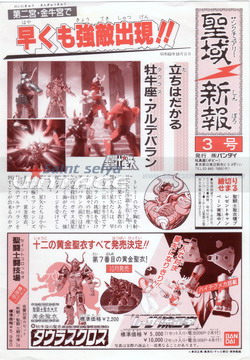 Este Catálogo fue incluido principalmente en las cajas del primer Set de Gold Saints editado, lease por este orden: Sagitario, Escorpio, Leo, Aries, Cancer y Virgo, anunciando su salida para Agosto.