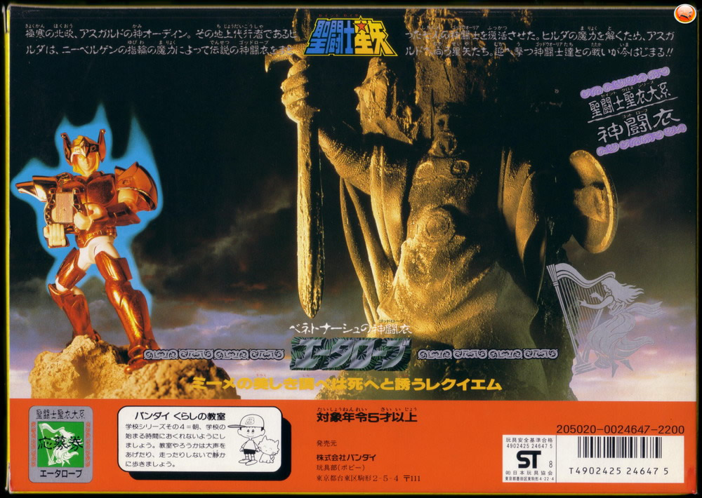 Comparte muchos elementos en común con todas las unidades editadas ese año como la presencia de un cupón para las Present Campaign en vigor o el uso de blister a modo de protección tan característico de las figuras made in 88. Este blister o lámina plástica cubre en su totalidad el frontal del recipiente de porexpan en el cual se alojan armadura, muñeco y peana. Un cambio acertado para una mejor conservación del producto frente al típico corcho que anteriormente protegía las piezas metálicas situadas en el centro de la box.