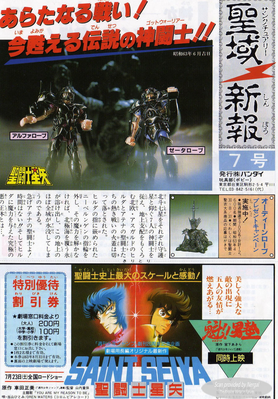 Nace de esta forma un Proyecto de Traducción ideado y exclusivo de SaintSeiyaVintage y que ha contado con la excepcional aportación de Perseo en la fase de traducción y la sobresaliente adaptación de Shape. Este trabajo continua la línea que ya en su día inició Hyoga^-^ con la traducción de los Anuncios de Vintage en TV y que también podeis ver en esta sección.